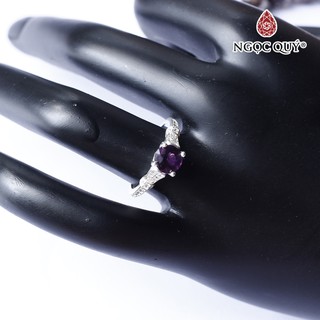 Nhẫn bạc họa tiết đơn giản đính TA tím cao cấp - Ngọc Quý