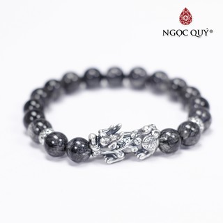 Vòng tay đá TA tóc đen phối tỳ hưu bạc hạt 10mm - Ngọc Quý