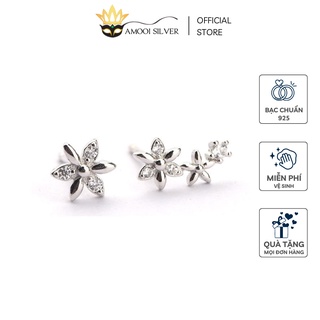 Bông Tai Bạc S925 Bất Đối Xứng Mẫu Hoa Nhí 1 Ngắn 1 Dài - Amooi Silver AB116