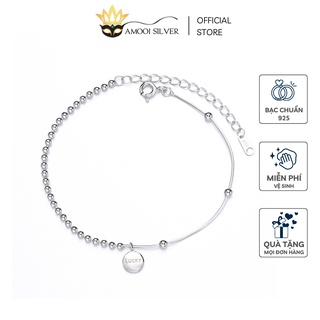 Lắc Tay Bạc S925 2 Loại Dây Bi Và Dây Charm Tròn Khắc Chữ Lucky - Amooi Silver AT53