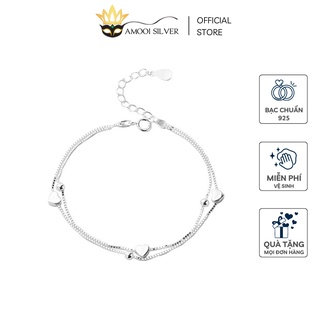 Lắc Tay Bạc S925 Dây Đôi Bi Cát Đính Đá Sang Trọng - Amooi Silver AT66