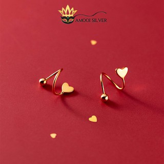 Bông tai bạc S925 tim xoắn chui vặn - Amooi Silver AB212