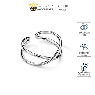 Nhẫn Bạc S925 Freesize Dáng Hở Mẫu Chéo Quả Cầu Chữ X - Amooi Silver AN65