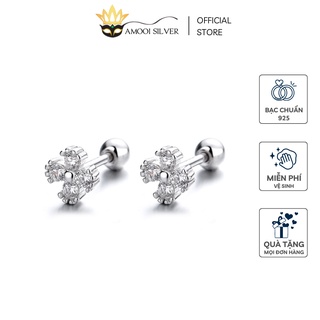 Bông tai bạc S925 hoa 4 cánh chui vặn nhí - Amooi Silver AB169