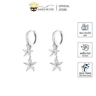 Bông Tai Bạc S925 Khoen Tròn Đôi Hoa 5 Cánh Đường Kính 9mm - Amooi Silver AB183