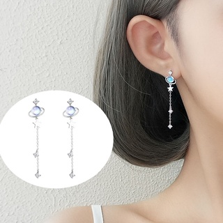 Khuyên tai xỏ lỗ phối dây xích tua rua và mặt hình ngôi sao nhỏ thời trang Hàn Quốc cổ điển cho nữ