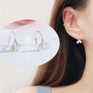 Khuyên tai xi bạc kiểu móc thiết kế hình lá cây phong cách Hàn Quốc cho nữ
