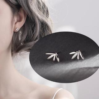 Khuyên tai hình lá tre kiểu dáng đơn giản phong cách Hàn Quốc màu bạc dành cho bạn gái