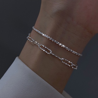 Vòng Tay 2 Pcs Korea Style Silver Link Chain Bracelet Sparkling Multi Layer Party Bracelets Set for Women Jewelry Gift