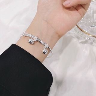Vòng Tay Bạc Đính Chuông Đơn Giản Dễ Thương Có Thể Điều Chỉnh Kích Thước Cho Nữ