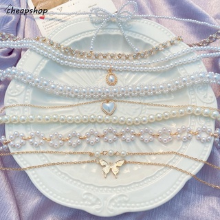 iF YOU Dây chuyền choker mạ vàng nhiều lớp mặt ngọc trai giả kiểu bướm thời trang thanh lịch dành cho nữ