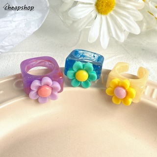 iF YOU Nhẫn nhựa trong suốt họa tiết hoa nhiều màu sắc dễ thương thời trang cho nữ