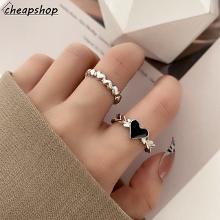 iF YOU Set 2 Nhẫn Bạc Hình Trái Tim Đen Phong Cách Cổ Điển Cho Nữ