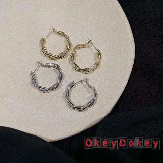 Khuyên Tai Dạng Vòng Tròn Xoắn Tinh Tế Màu Trơn Cho Nữ