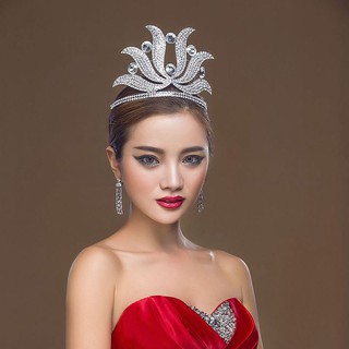 Vương miện hoa hậu dáng cao đá hoa văn màu trắng mới