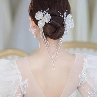 Cài tóc cô dâu đôi pha lê dây tua rua đá Giangpkc 2022 SP2221621