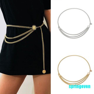 springeven Fashion Wave Metal Waist Chain Belt Gold Buckle Body Chain Dress Belt RFT