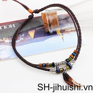 Vòng cổ Da Mặt Răng Phong Cách Dân Tộc Có Thể Điều Chỉnh Trang Trí