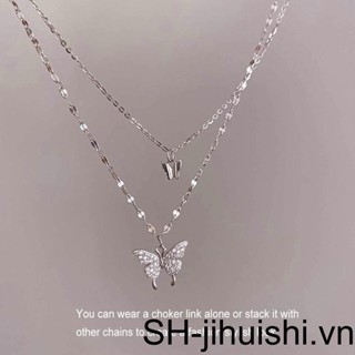 Vòng cổ Hai Lớp Màu Bạc Trang Trí Hình Côn Trùng Đính Đá Thời Trang Cho Nữ