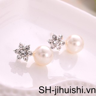 1 Đôi Bông Tai Hình Hoa Tuyết Đính Ngọc Trai Nhân Tạo Dành Cho Nữ