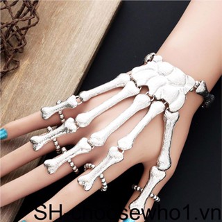 Vòng Đeo Tay Kèm Nhẫn Kim Loại Hình Bộ Xương Halloween Dành Cho Nữ