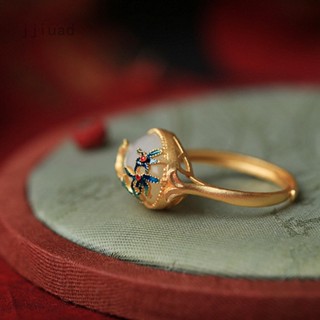 Nhẫn Hở Mạ Vàng Đính Đá Ngọc Bích Phong Cách Cổ Điển
