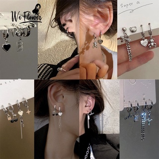 Set 4 khuyên tai WE FLOWER mạ bạc S925 mặt trái tim sao ổ khóa tua rua anh đào đính pha lê nhân tạo thời trang cho nữ