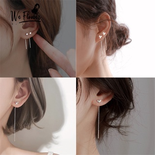 Khuyên tai WE FLOWER mạ bạc S925 dáng dài thiết kế trái tim/ hoa/ bướm/ chữ thập thời trang dành cho nữ