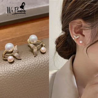 We Flower Bông Tai Hình Đuôi Cá / Bướm Đính Pha Lê Lấp Lánh Phong Cách Hàn Quốc Thời Trang Cho Nữ