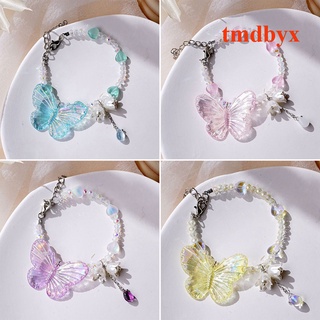Tmdbyx Vòng tay mạ vàng mặt dây hình bướm đính ngọc trai nhân tạo độc đáo