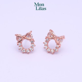 Bông tai bạc nữ Mon Lilas Mặt Nơ đính đá K122006