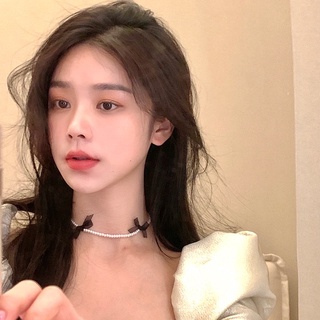 Vòng cổ hạt size nhỏ thanh lịch phối nơ, choker vintage mã RQ-88