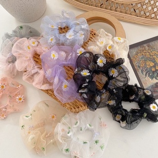 Dây Cột Tóc Vải Lưới Bản Lớn In Họa Tiết Hoa Cúc Phong Cách Hàn Quốc Cho Nữ
