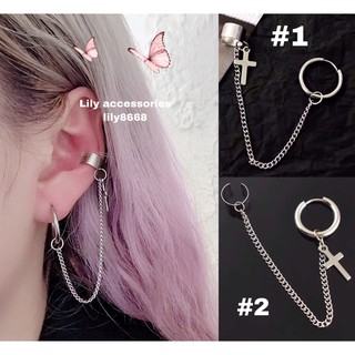 khuyên tai và kẹp vành tai titan phối thánh giá không gỉ không đen không dị ứng cho nam và nữ