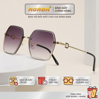 Kính Râm Nữ Thời Trang Đa Giác Tròng Không Viền Độc Đáo Gọng Kim Loại Họa Thiết Chữ U Kiếng Mát Cho Nữ AK115 - AORON