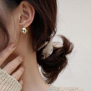 Đôi khuyên tai hình tròn kim loại màu vàng/bạc đơn giản phong cách Hàn Quốc
