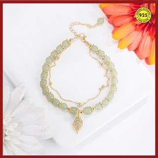 Vòng Tay Chuỗi Đôi Phối Đá Ngọc Bích Thiết Kế Cao Cấp Không Thấm Nước Phong Cách Retro Thanh Lịch