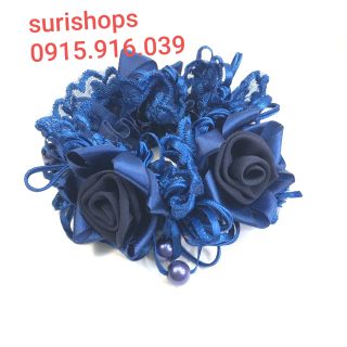 Cột tóc hoa hồng phối vải ren, Buộc Tóc Hoa Hồng Rose
