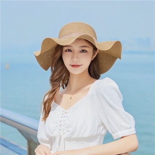 Mũ cói (nón cói) vành rộng lượn sóng thắt nơ xinh xắn (SH80)