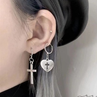 Bông tai chữ thập thánh giá trái tim thả dài phụ kiện nam nữ