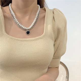Dây chuyền nữ ngọc trai nhân tạo trái tim đen
