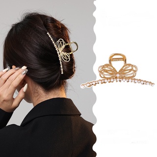 Kẹp tóc nơ kim loại đính ngọc trai nhân tạo trang sức sg