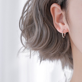 Bông tai chữ U nữ dễ thương tròn màu bạc khuyên