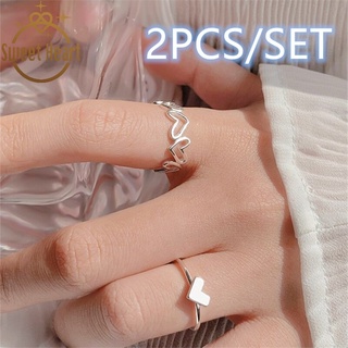Set 2 nhẫn mở hình trái tim thời trang cho nữ