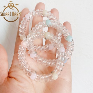 Dây buộc tóc co giãn đính hạt trong suốt thời trang ngọt ngào cho nữ