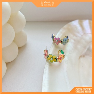 Khuyên tai MANYUE chấu bạc S925 thiết kế hoa nhiều màu đính ngọc trai thời trang Hàn Quốc