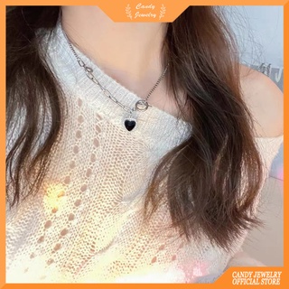 Vòng cổ MANYUE mặt hình trái tim màu đen đơn giản phong cách hip hop cho nữ