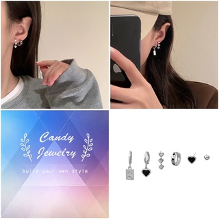 Bông Tai Màu Đen Kiểu Kẹp Hình Trái Tim Phong Cách Nhật Hàn Cổ Điển