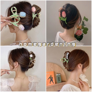 Kẹp Tóc Càng Cua Đính Hoa Lớn Bằng Nhựa Màu Kẹo Ngọt Cho Nữ