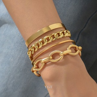 Ygt Set 4 Vòng Đeo Tay Dây Xích Kim Loại Dày Dặn Phong Cách Punk Cổ Điển Thời Trang Cho Nữ